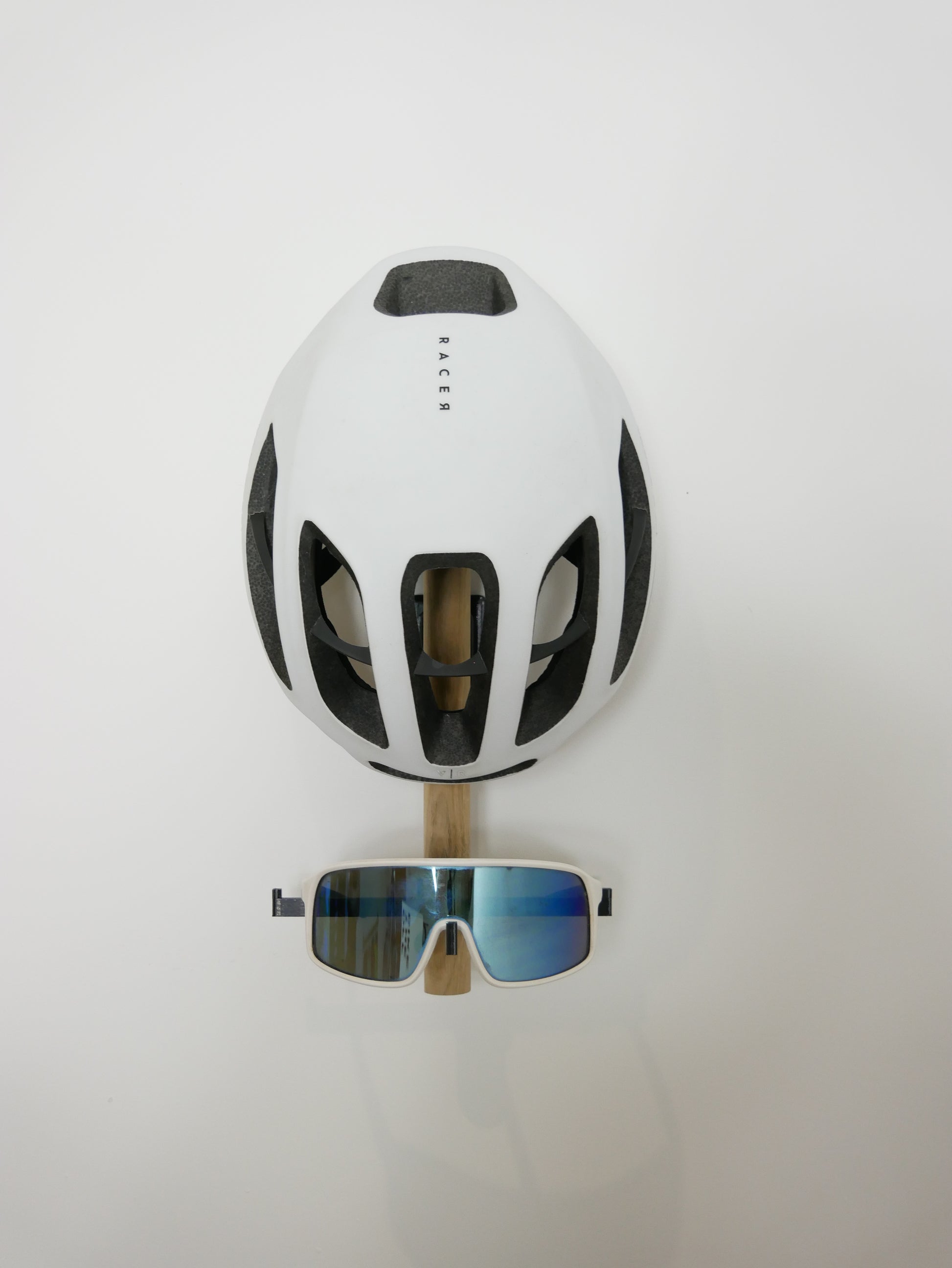 Made of 3D printed PETG and a milled wooden dowel, show off your glasses and helmet the way you're seen on the road.